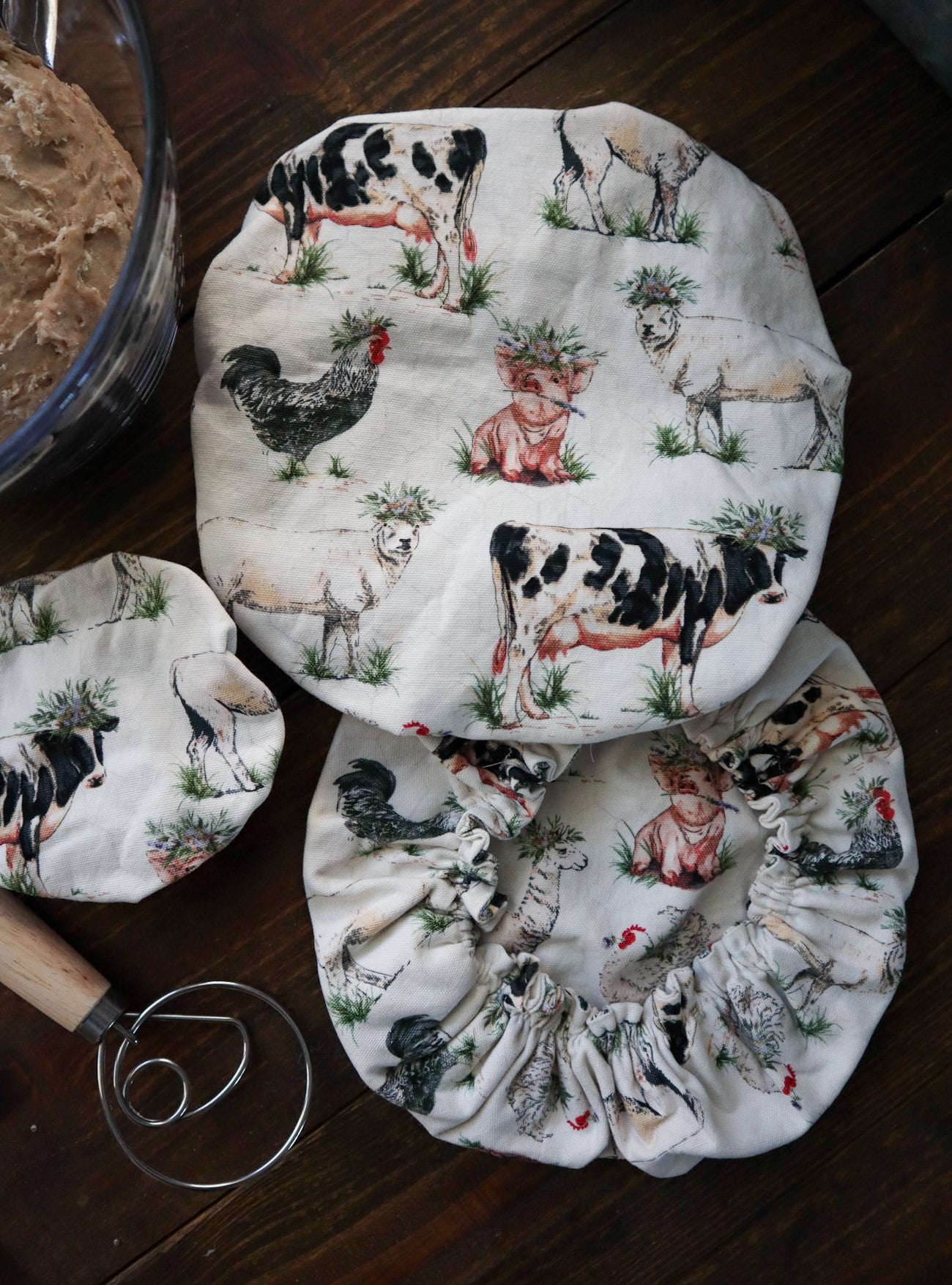 Handmade in Ash, NC, these covers are double thickness and made from 100% cotton material. Bowl covers have an endless amount of uses, from covering and storing leftovers to covering rising dough. Perfect for making bread with your new sourdough starter!